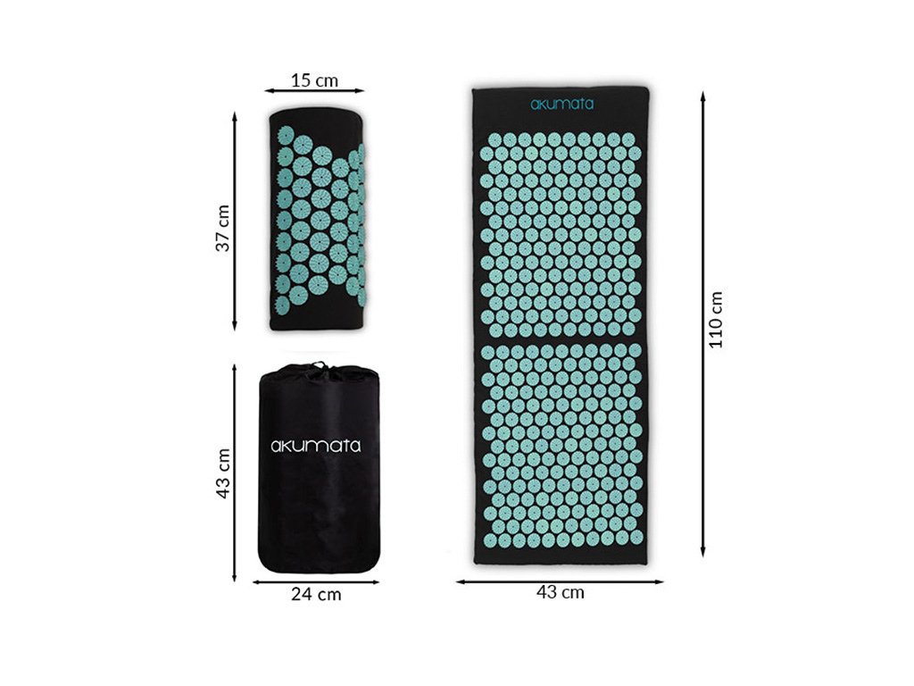 Akupresúrny set obsahuje dlhú podložku s hrotmi a masážny vankúš. V porovnaní s inými zdravotnými podložkami sa vyznačuje vysokou ostrosťou hrotov. Akupresúrna podložka má všestranné využitie - bola vytvorená pre ľudí bojujúcich s bolesťami rôzneho pôvodu, nadmerným svalovým napätím, stresom a nespavosťou. Navyše dokonale podporuje boj proti celulitíde a vyhladzuje pokožku. Produktje bezpečný na použitie - možno ho použiť vo fyzioterapeutických kanceláriách, doma alebo v telocvični.