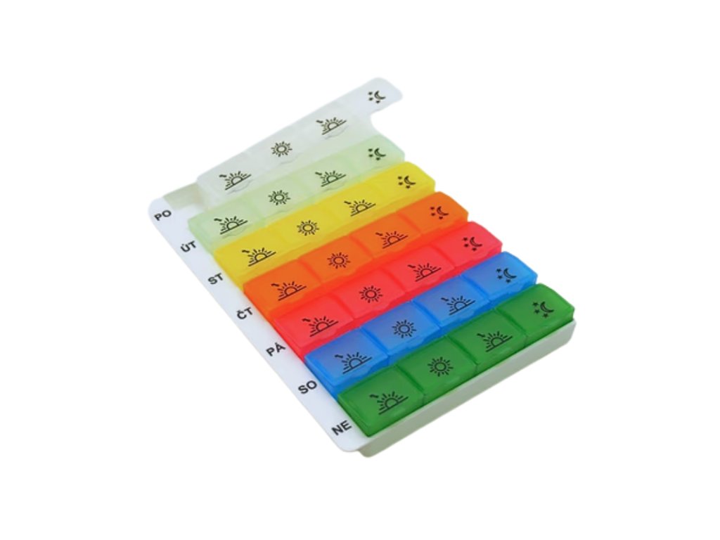 Týždenný dávkovač liekov je praktický pomocník pre každého, kto potrebuje mať prehľadné a spoľahlivé dávkovanie liekov alebo doplnkov výživy počas celého týždňa.
