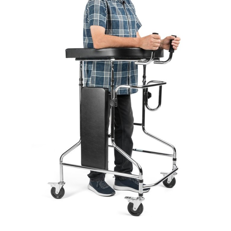 Rolátor Yola je určený pre pacientov so zníženou pohyblivosťou, ktorí potrebujú stabilnú oporu a pomoc pri chôdzi.
