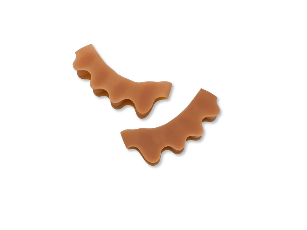 Gélový oddeľovač prstov na nohe je ideálny pomocník pri problémoch ako vybočený palec (hallux valgus), otlaky, kladivkové prsty či iné deformácie prstov na chodidlách. Separátor jemne oddeľuje prsty, čím znižuje trenie, upravuje ich polohu a pomáha zmierniť bolesť. Je vhodný na denné nosenie v pohodlnej obuvi, ako aj na nočné používanie počas spánku. Ideálny aj ako prevencia pri dlhodobom státí alebo chôdzi.