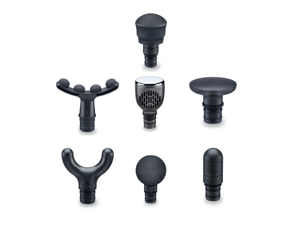 Masážna hlava umožňuje tento tepelný efekt aj bez pohybu hlavy, čo z neho robí všestranný prístroj pre rôzne použitia. S 7 vymeniteľnými nadstavcami poskytuje prispôsobiteľnú masáž pre chrbát, krk, nohy či ramená.