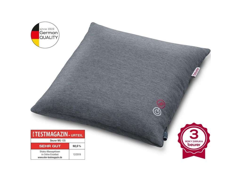 Vychutnajte si relaxačnú, všestrannú masáž na chrbte, krku, ramenách alebo nohách Vďaka univerzálnemu tvaru vankúša môžete masážny vankúš použiť aj s vlastným poťahom. So shiatsu vankúšom Beurer MG 135 sa budete cítiť neustále oddýchnutí a zrelaxovaní.