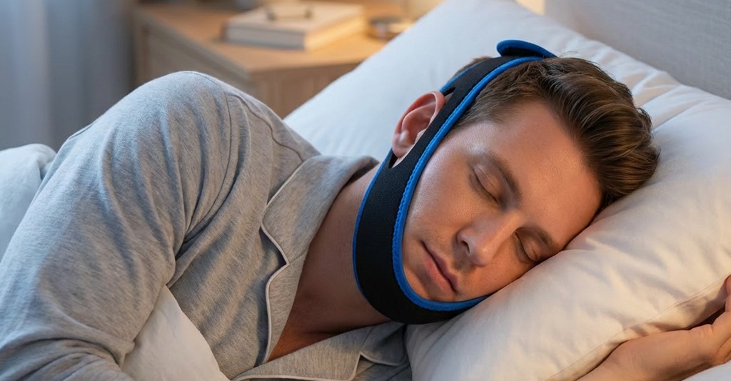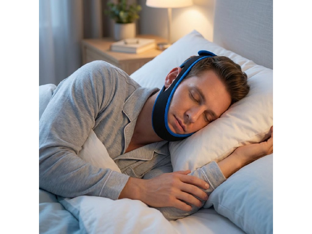 Počas spánku pás stabilizuje dolnú čeľusť a bradu v správnej polohe. Tým optimalizuje prúdenie vzduchu nosom, znižuje vibrácie mäkkých tkanív v hrdle a pomáha predchádzať chrápaniu. Výsledkom je plynulejšie dýchanie, menej prerušovaný spánok a sviežejšie ráno bez pocitu sucha v ústach.