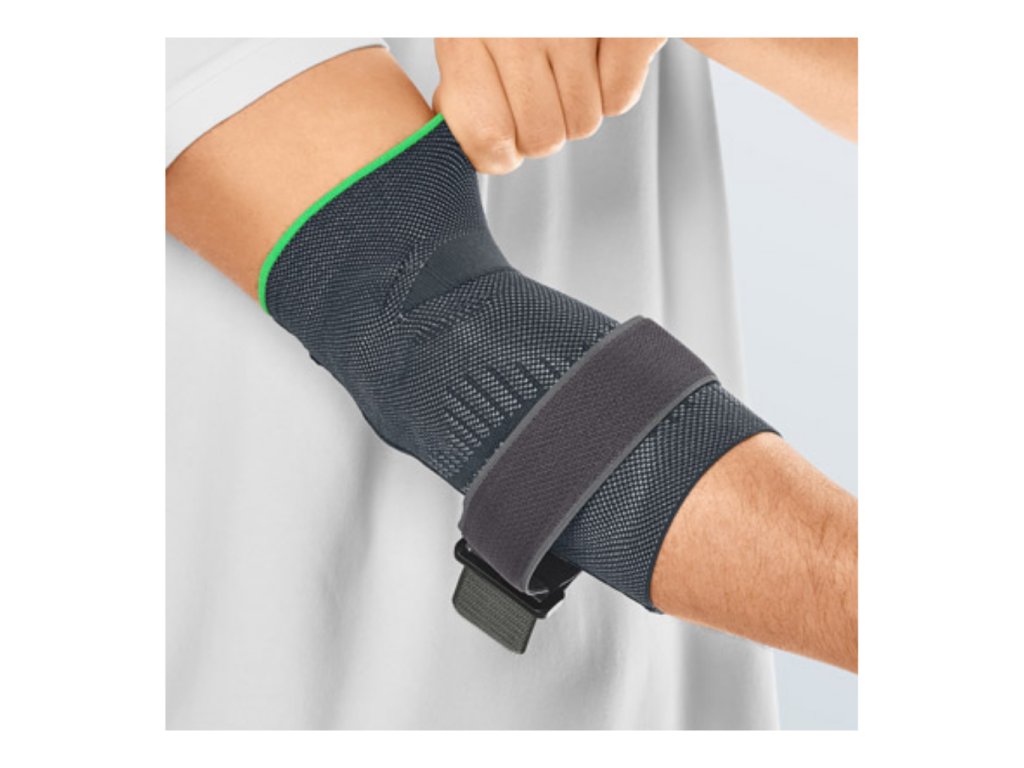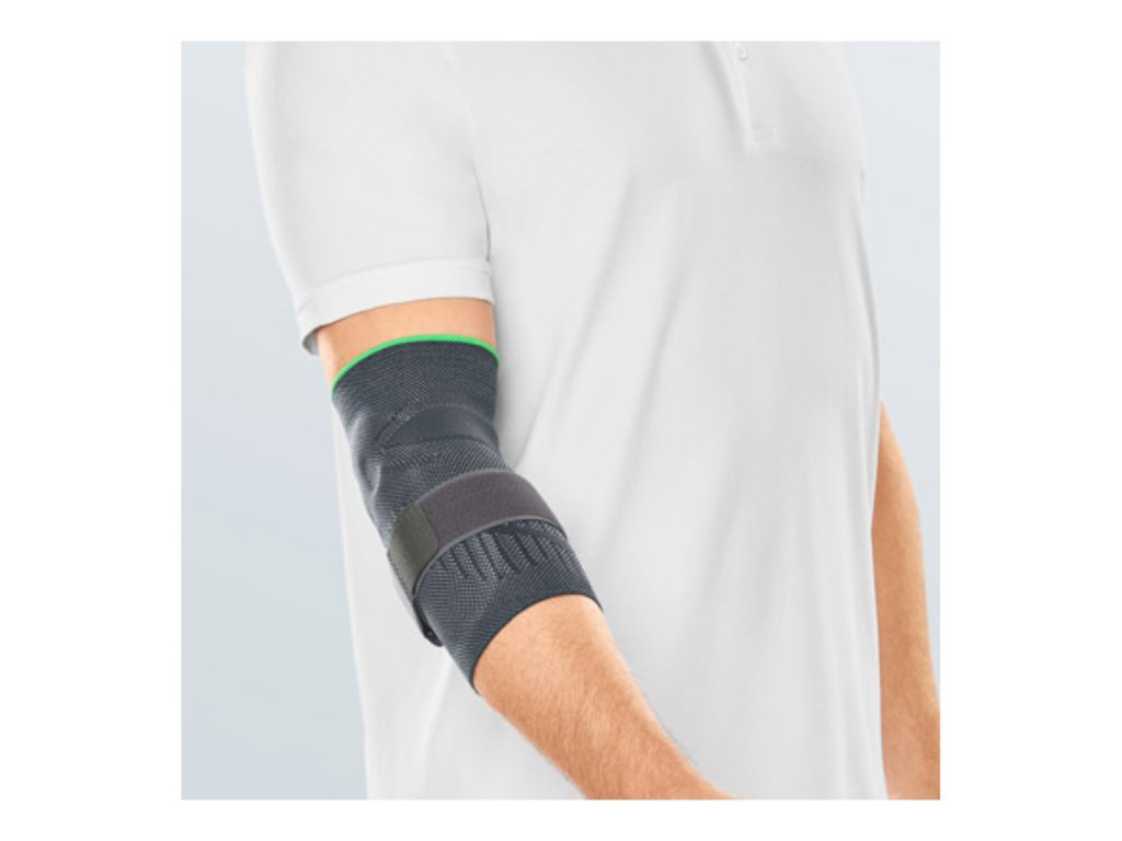 Kompresná pletenina vytvára jemný masážny efekt, ktorý podporuje cirkuláciu, napomáha rýchlejšej redukcii opuchov a hematómov a prispieva k prirodzenej regenerácii tkanív. Bandáž je vhodná na každodenné nosenie, pri práci, športe aj pri zvýšenej záťaži lakťa.