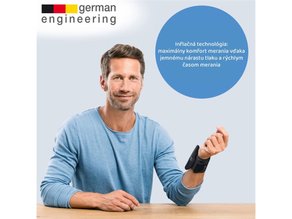 - Inflačná technológia: maximálny komfort merania vďaka jemnému nárastu tlaku a rýchlym časom merania